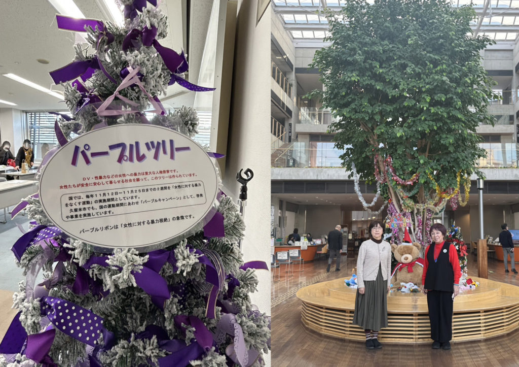 パープルリボンで飾られたクリスマスツリーが印象的でした。
